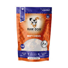 RAWDOGThe "RAWDOG Beefy Chews 6OZ Bag" are dog treats made from a single ingredient, 100% beef larynx. They are designed for moderate to heavy chewers an...