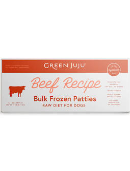 GREEN JUJUGreen Juju Bulk Beef is a premium, frozen raw dog food available in 18-pound boxes of 8-oz patties, offering a complete and balanced diet made f...