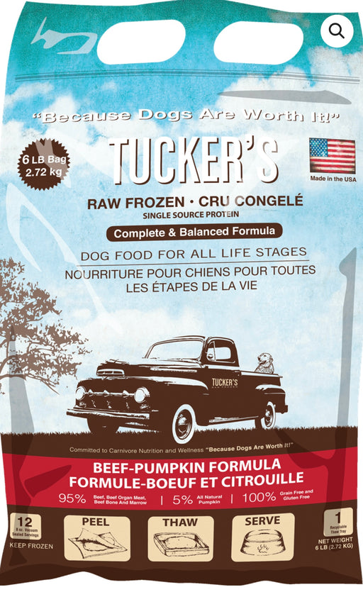 TuckersDetails Tucker's Raw Frozen Beef Pumpkin Formula features 95% muscle meat, organs, marrow, and bone for optimal protein and calcium. Added pumpkin...